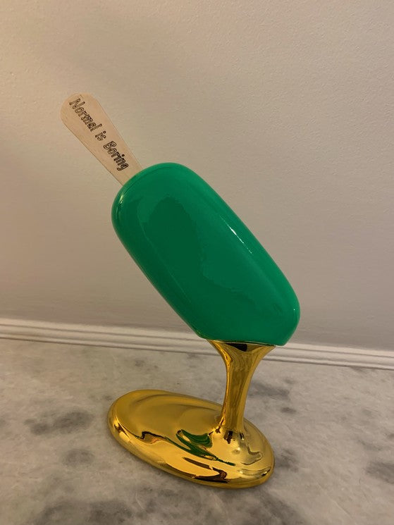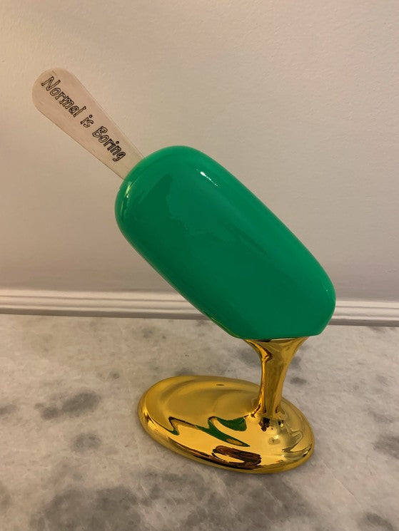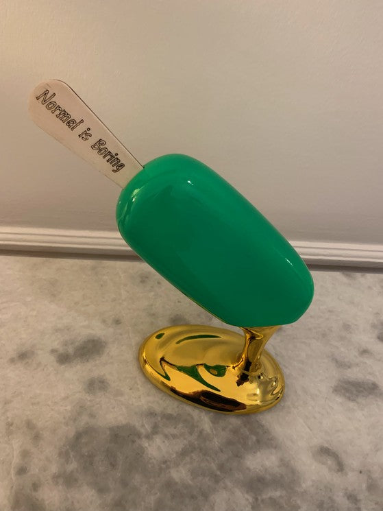 De titel Normal is Boring benadrukt de filosofie achter het werk: durf anders te zijn. De levendige groene uitvoering versterkt het eigentijdse karakter en maakt deze sculptuur tot een blikvanger in: