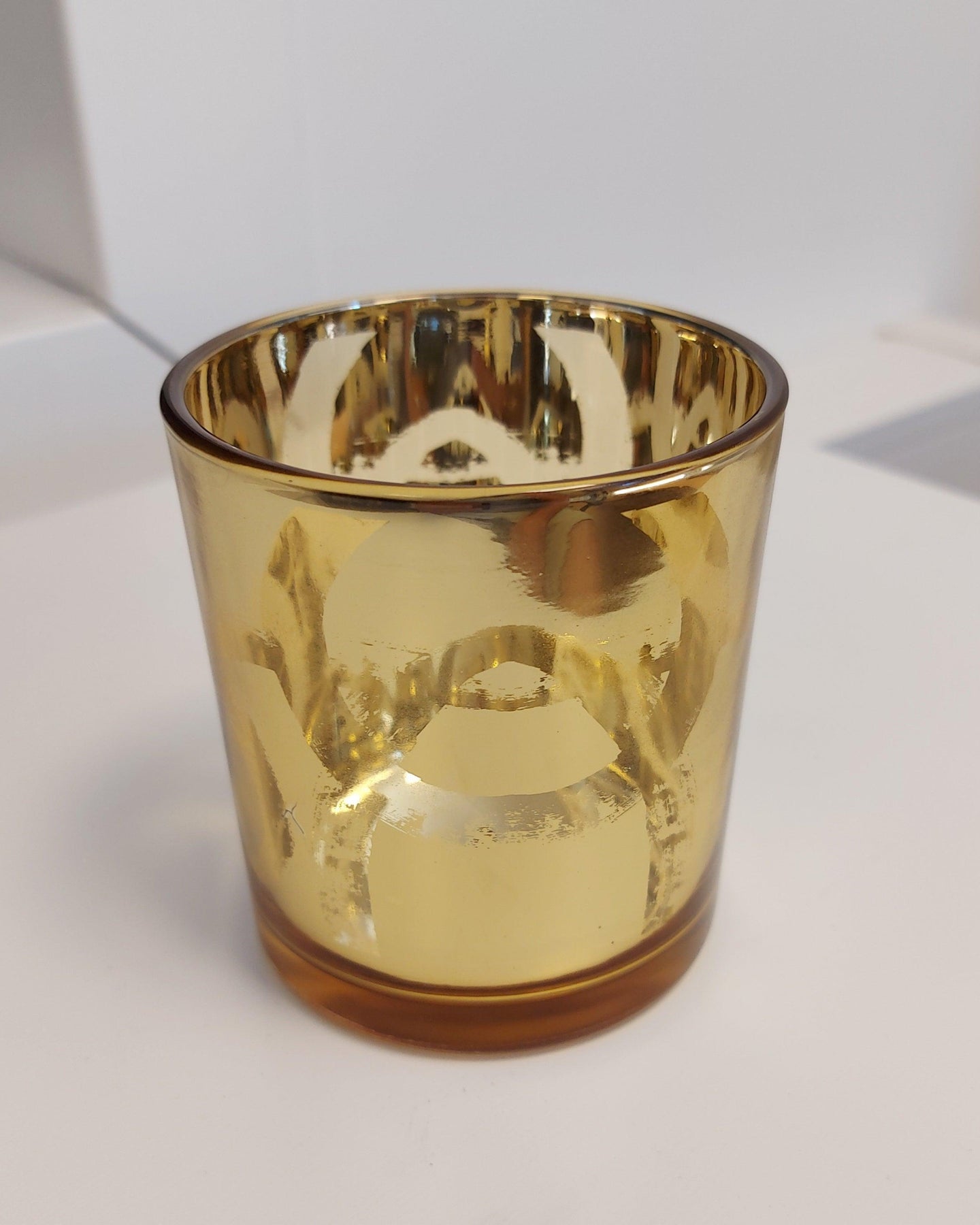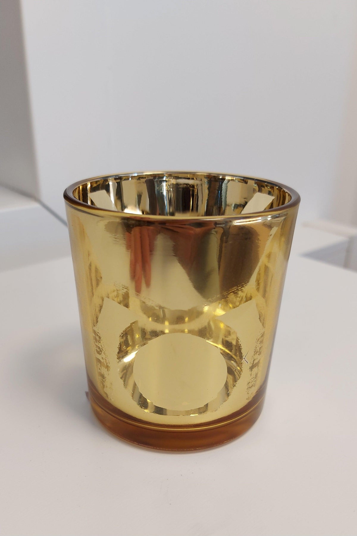 Een mooie chique waxinelichthouder goudkleurig.