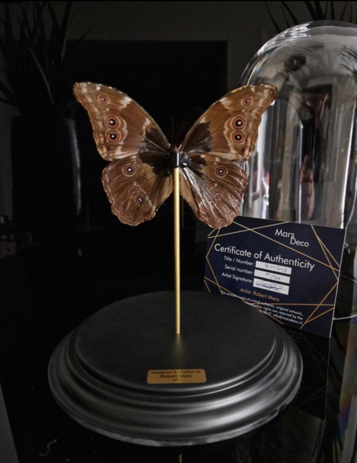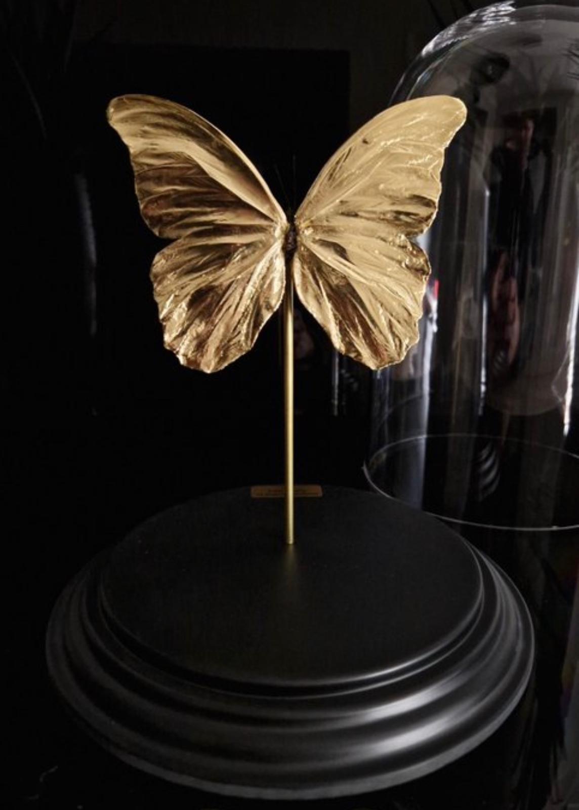 Unieke vlinderkoepel met 23-karaats bladgoud vervaardigde Morpho Didius-vlinder van de beste A1 kwaliteit.