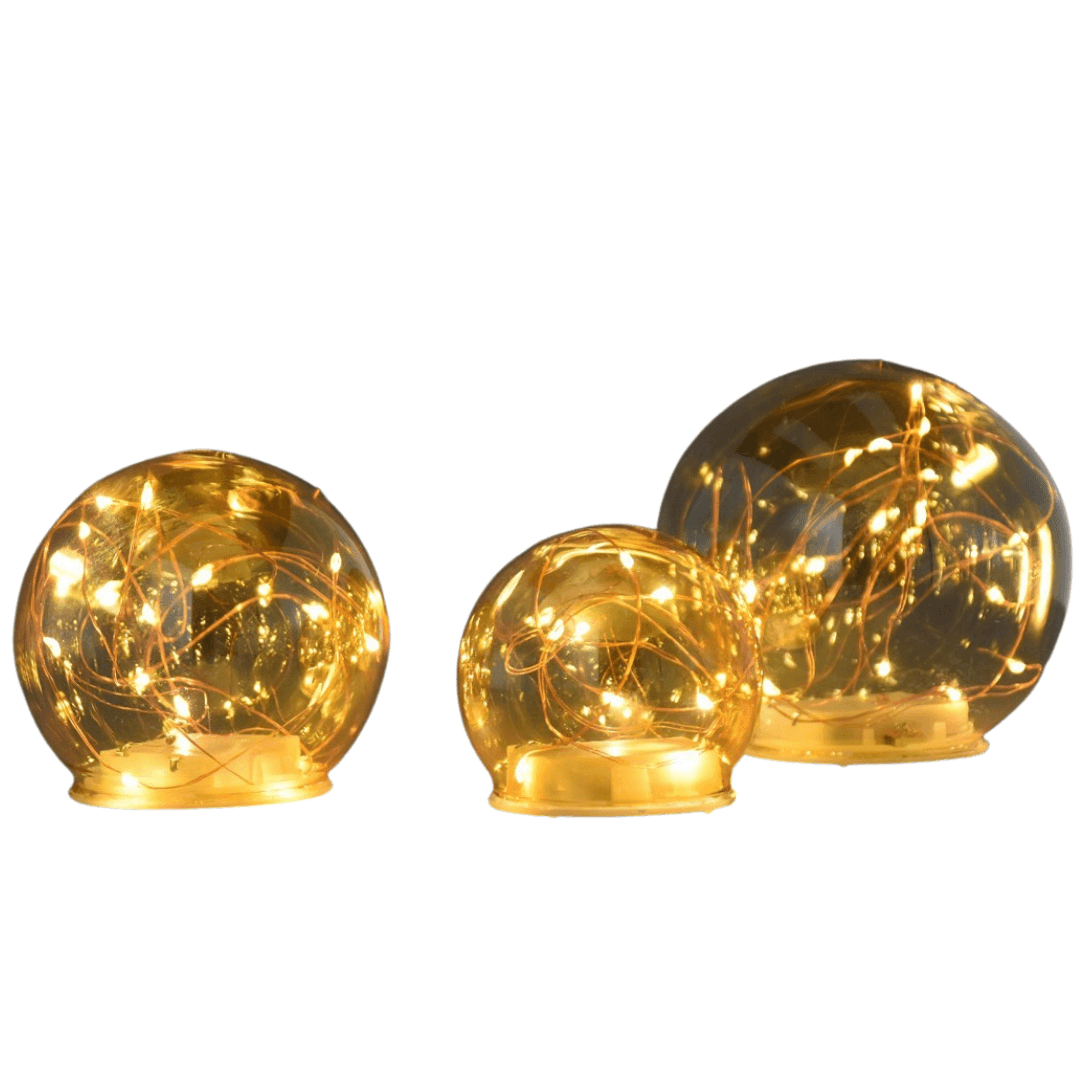 Deze mooie set van drie glazen bollen hebben alle drie een ander formaat en binnen in de bollen zitten ledlampjes. Super sfeervol voor in het najaar en de winter!
