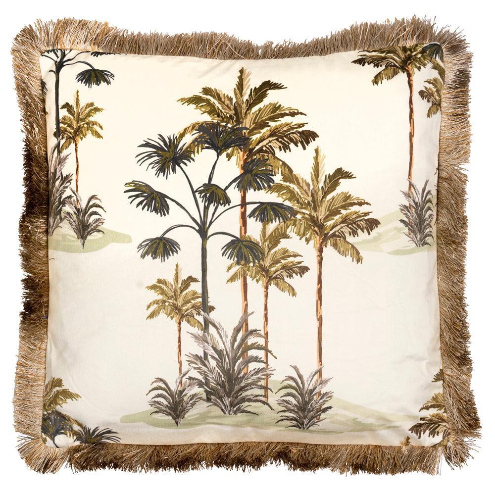 Sierkussen - fluweel gouden franjes Palmbomen - JungleHome