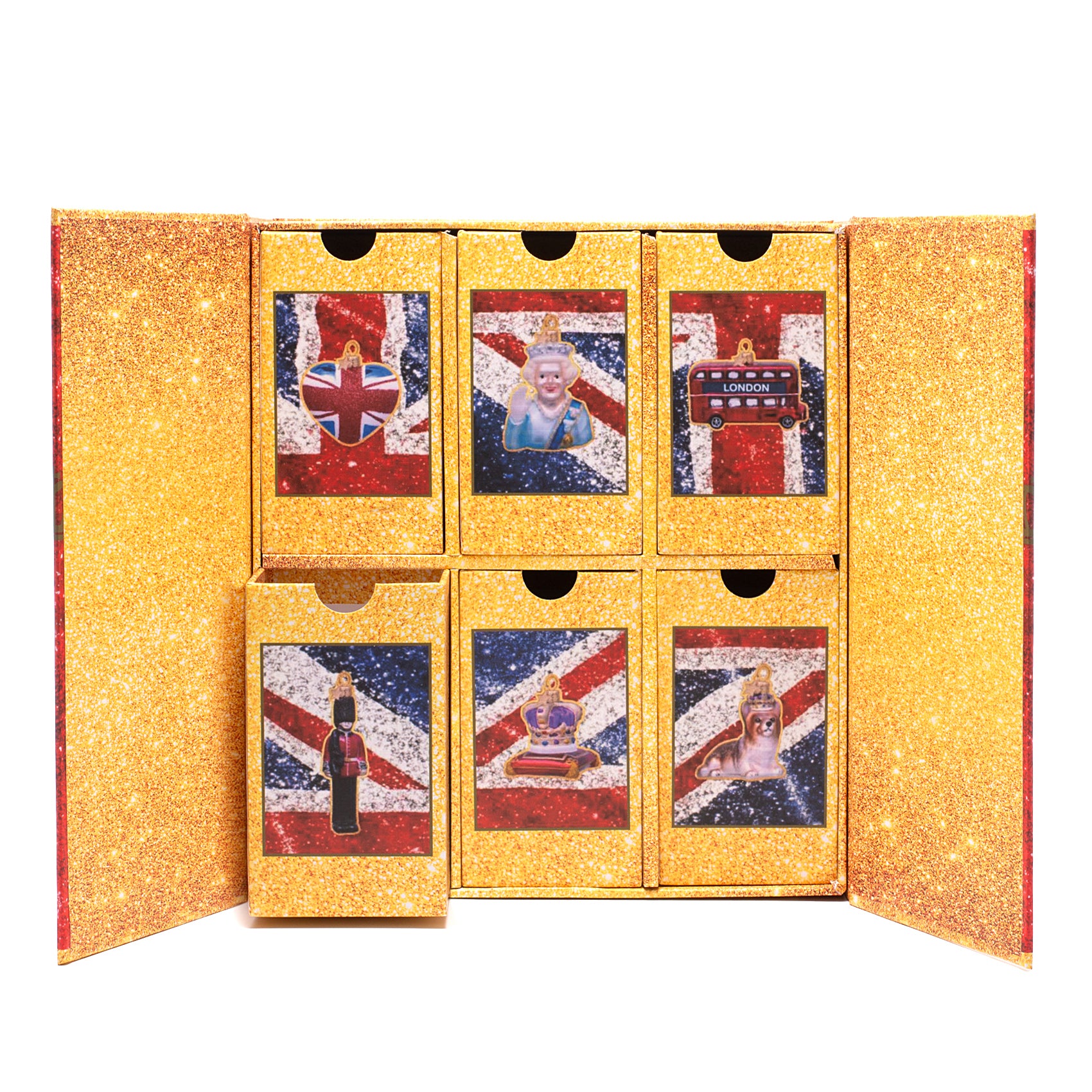 Met de Vondels British Icon Box haal je een vleugje Britse elegantie in huis. Deze luxe geschenkset bevat 6 handbeschilderde glazen kerstornamenten, verpakt in een stijlvolle box met Union Jack-print. Een echte eyecatcher voor liefhebbers van Londen, glamour en design.