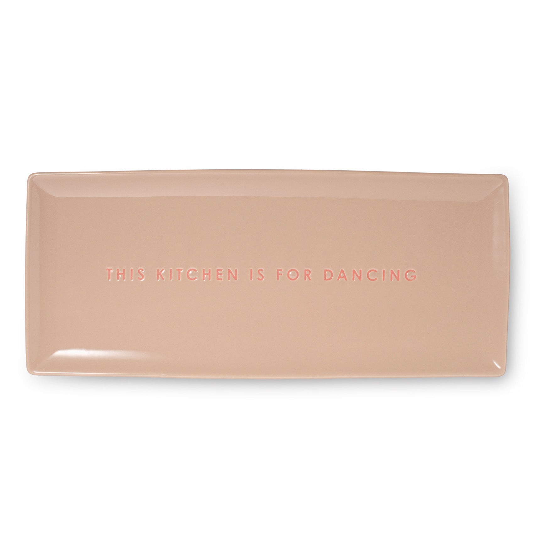 💃 Vondels Servierschaal “This Kitchen Is For Dancing” – Beige Keramiek – 35 x 15 cm