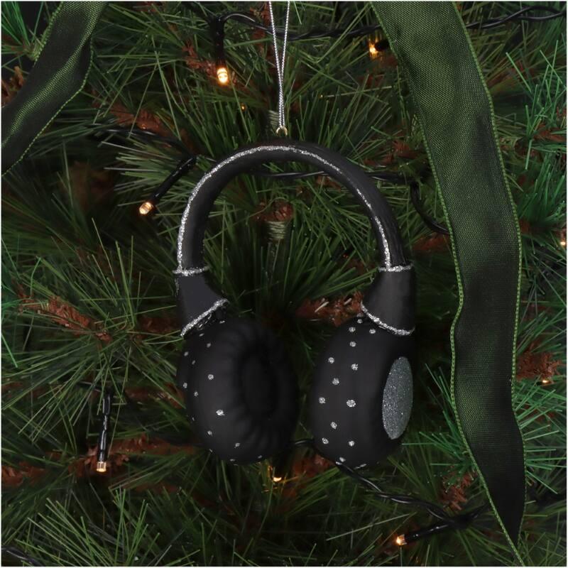 Wat een gave kersthanger van een zwarte koptelefoon!