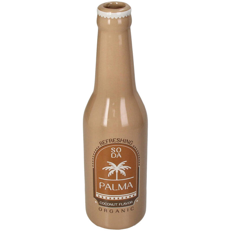 Deze originele Vaas Frisdrankfles Palma in warm bruin is een verrassende mix van retro en tropisch design. Gemaakt van fijn aardewerk en geïnspireerd op een klassieke frisdrankfles, straalt deze vaas nostalgie én stijl uit. De subtiele palmaztekening en matte afwerking geven het geheel een stijlvolle en natuurlijke uitstraling.