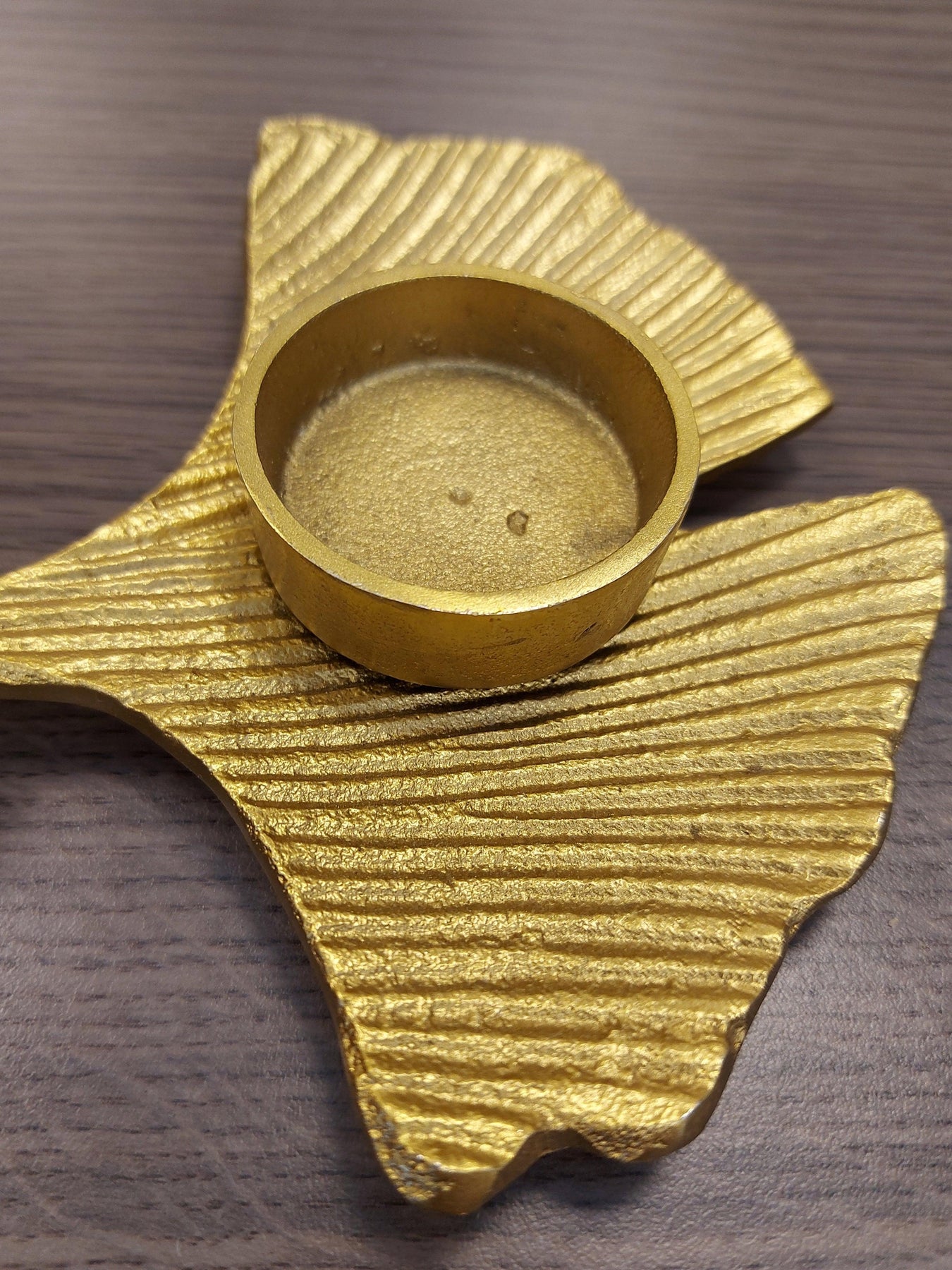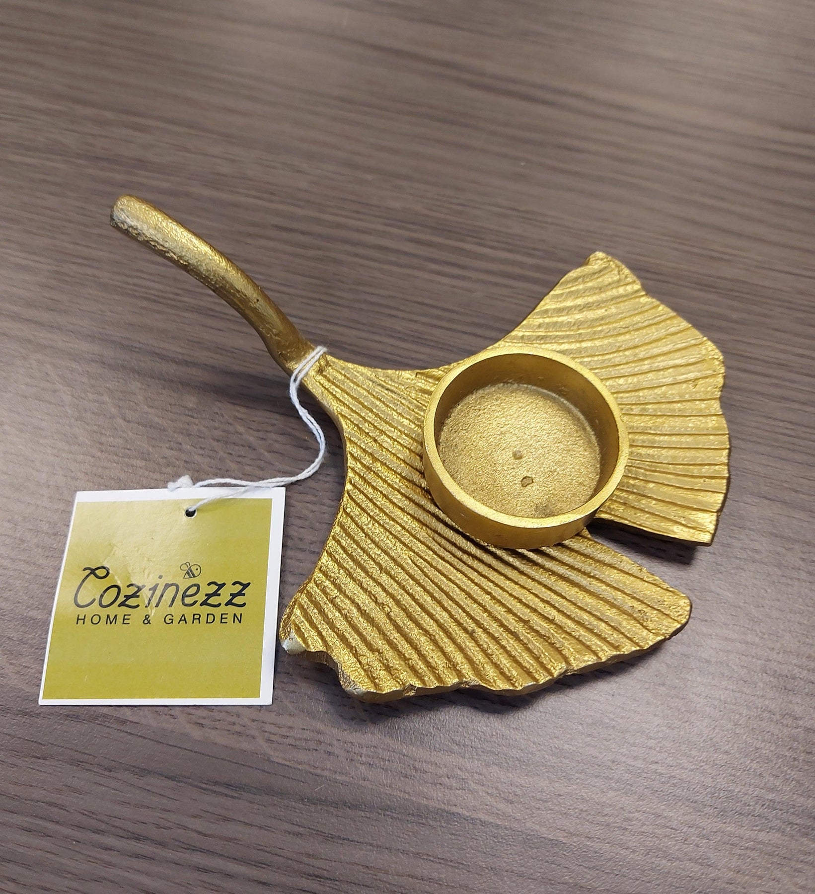 Een mooie waxinelichthouder goudkleurig in de vorm van een blad